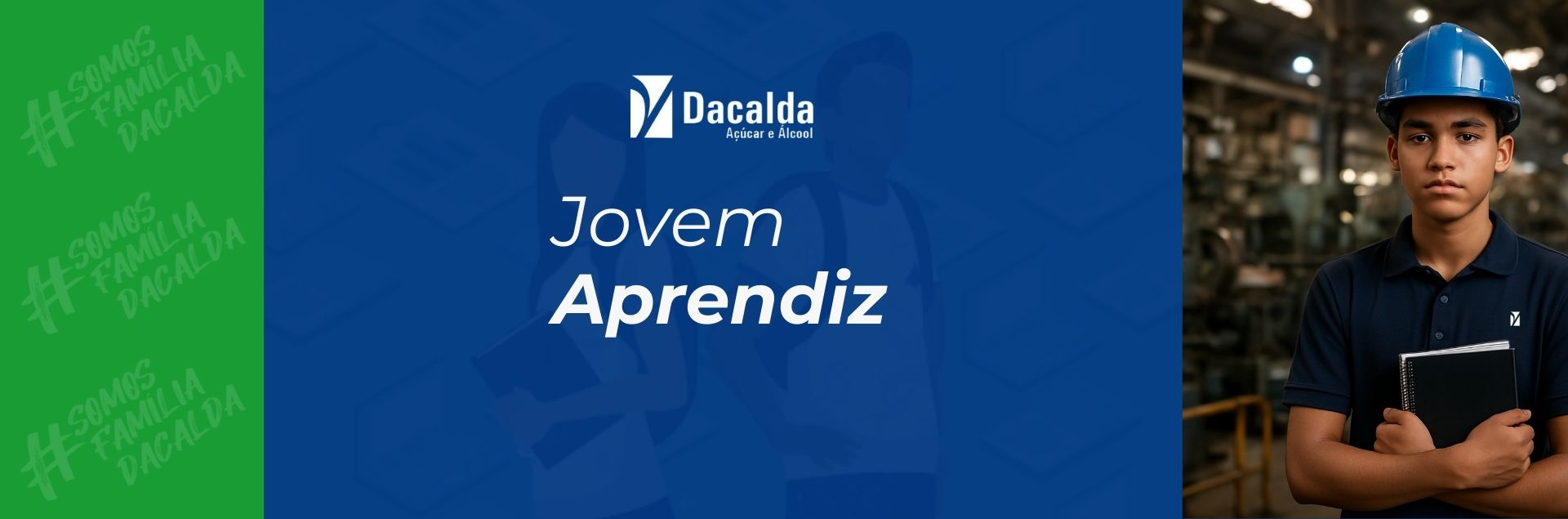 Todos os aprendizes são contratados pela Família DACALDA e realizam sua formação prática nas instituições parceiras, integrando educação, cultura e cidadania. Acompanhados pela equipe de Segurança do Trabalho e pelo time técnico do CIEE/PR, conhecem de perto nosso processo produtivo e mergulharam em nossa história, valores e cultura organizacional.